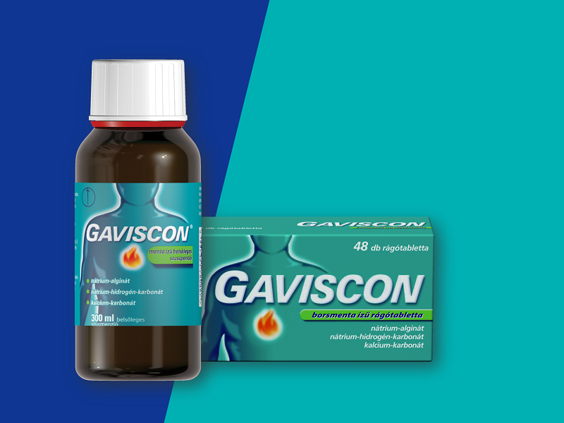 Gaviscon borsmenta ízű rágótabletta pedig víz nélkül is könnyedén bevehető.